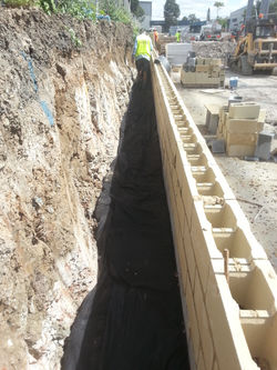 Excavating foundations for warehouse buildings